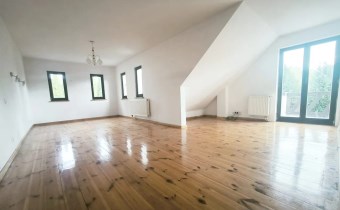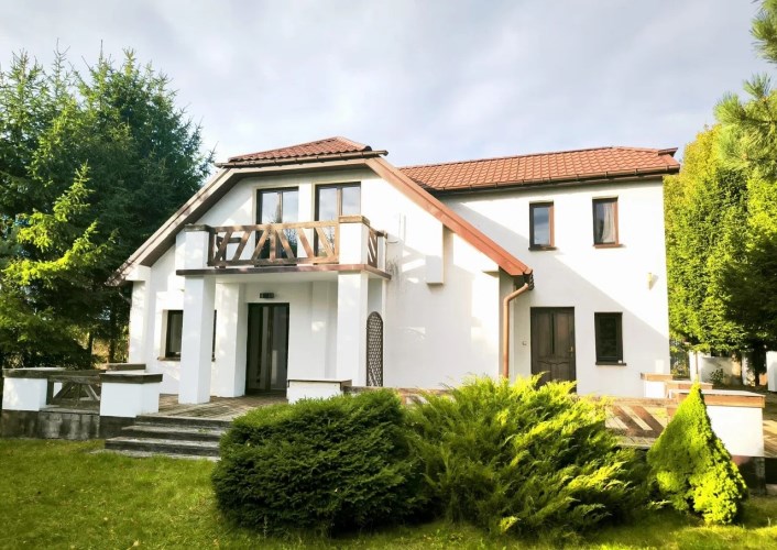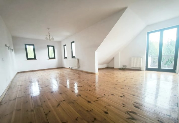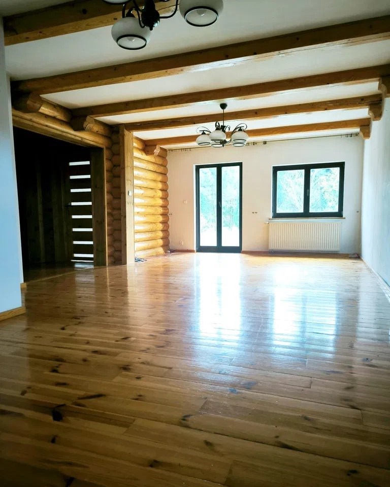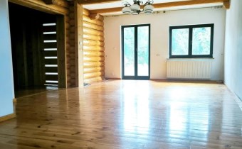 Dom wolnostojący piętrowy z bala drewnianego o powierzchni całkowitej 170 mkw , powierzchnia użytkowa 125mkw . Dom składa się z czterech pokoi ( możliwość pięciu ) dwóch łazienek w tym jedna z oknem , garderoby . Dom zlokalizowany jest na działce 1500 mkw , zagospodarowanej wieloletnimi drzewami i niską roślinnością . Dom do zamieszkan9a , ewentualnie do odświeżenia . Atrakcyjna , zaciszna lokalizacja ,dom zlokalizowany jest w