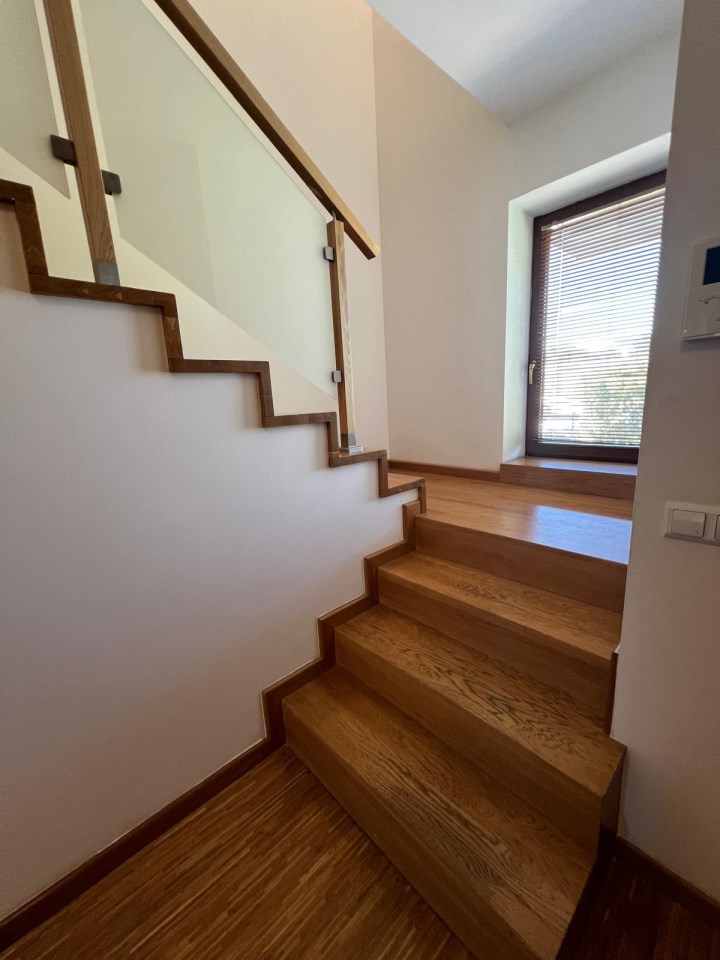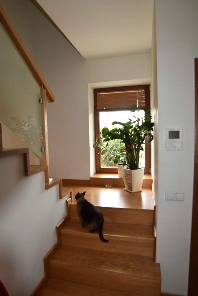 3. KLATKA SCHODOWA WEWNĘTRZNA (podesty drewniane, wygodne przeszklone poręcze)
