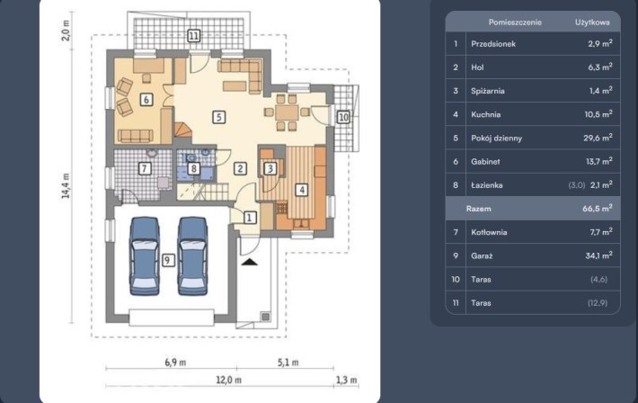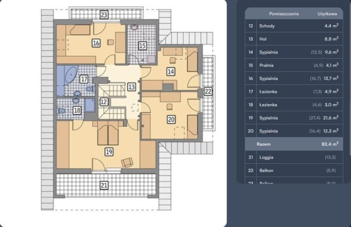 Powierzchnia przedpokoi13,2; 6,3 m2