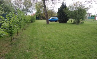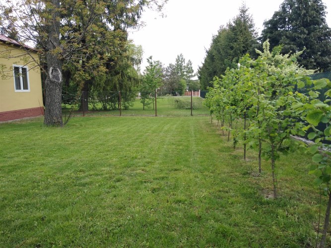 2 z zadbanym trawnikiem oraz nasadzeniami roślin i krzewów ozdobnych, całość terenu ogrodzona. Możliwość podziału nieruchomości na dwie odrębne działki.