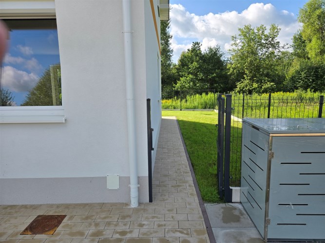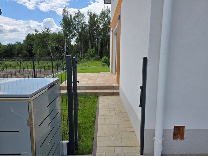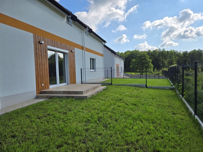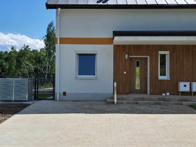 Każdy segment stanowi odrębny lokal mieszkalny z udziałem w częściach wspólnych oraz w drodze dojazdowej. Ogródek i podjazd z miejscem postojowym do wyłącznego korzystania przez właścicieli poszczególnych lokali.