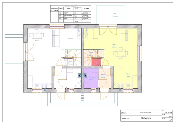 - parter: przestronny salon z bezpośrednim wyjściem na ogród, funkcjonalna kuchnia, WC oraz kotłownia,
