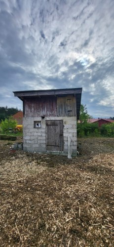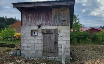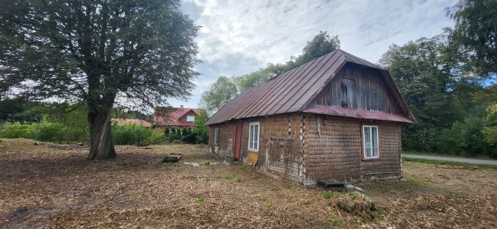 • stary dom drewniany o pow. ok. 60m2 (5x12m) na podmurówce - do rozbiórki,