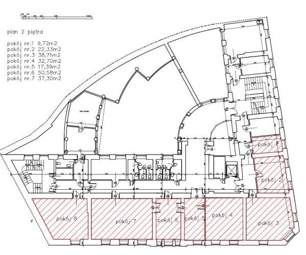 2. P O Ł O Ż E N I E = LOKAL NA II pietrze reprezentacyjnej kamienicy o charakterze biurowym; w budynku instalacja alarmowa, monitoring i ochrona, instalacja ppoż,