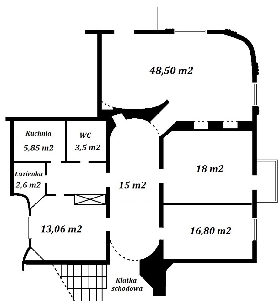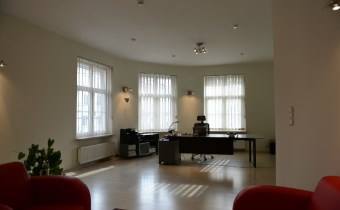 4 pomieszczenia biurowe o powierzchni 48, 18, 16,8 i 13m2 (dwa z dużymi balkonami) ponadto kuchnia łazienka,  WC i efektowny hol. Ostatnim najemcą była kancelaria adwokacka.