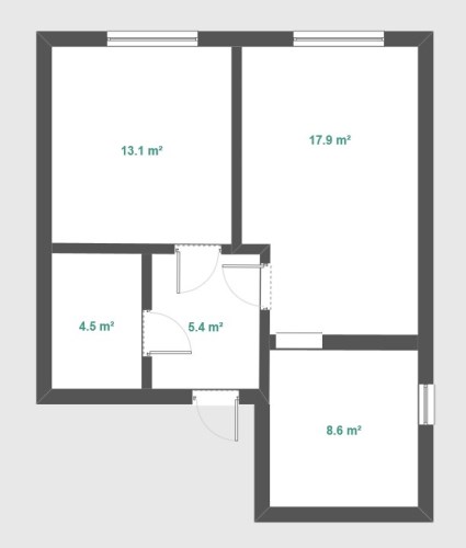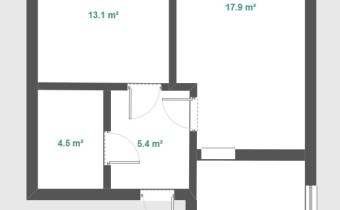 Mieszkanie składa się z przedpokoju, łazienki, dwóch pokoi oraz kuchni.