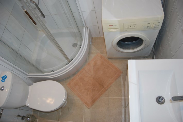 Wyposażenie łazienki WC, umywalka, pralka, natrysk, lustro, kabina prysznicowa
