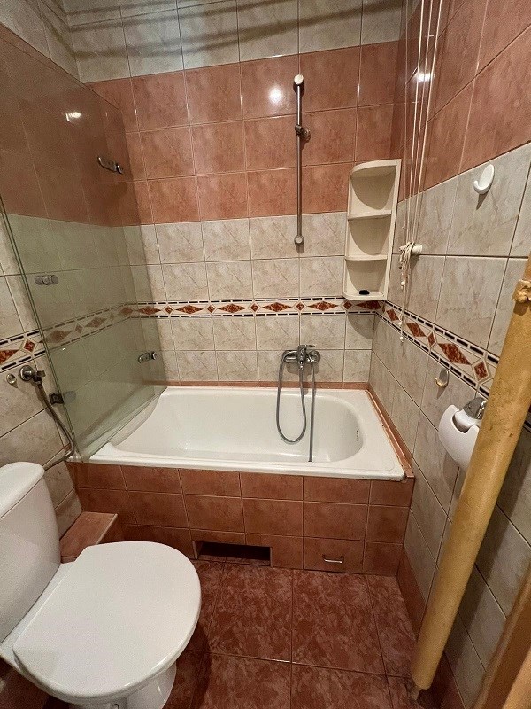 - ŁAZIENKA I WC:: RAZEM, POW.: 3,5m2 , ŚCIANY: glazura ,  PODŁOGA: terakota, INFORMACJE DODATKOWE: wanna z szybą z opcją prysznica, pralka