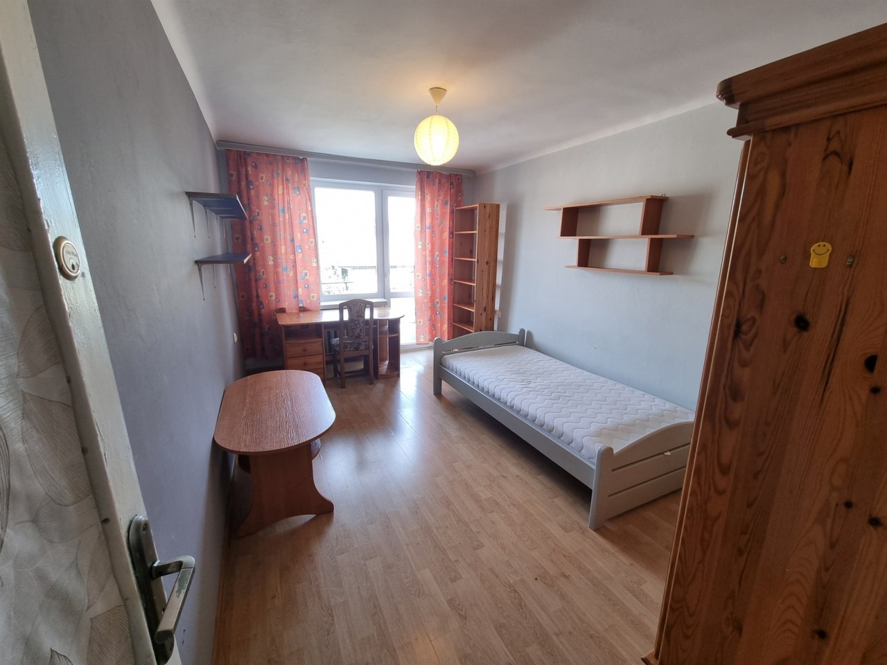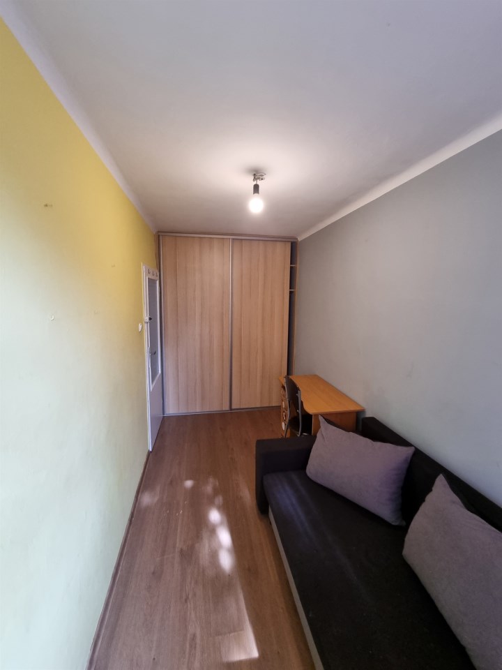 Mieszkanie w średnim stanie technicznym, sprzedawane z pełnym umeblowaniem i wyposażeniem (w każdym z pokoi łózko, szafa, w kuchni pełna zabudowa kuchenna z lodówką, w łazience pralka).