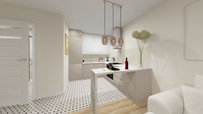 Mieszkanie urządzone w nowoczesnym lekkim stylu z możliwością własnej aranżacji.