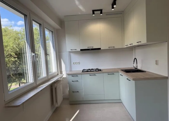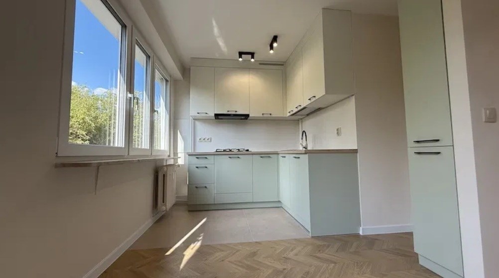 W trakcie renowacji mieszkanie zyskało nowe instalacje, podłogi, tynki i gładzie a także 3-szybowe okna!