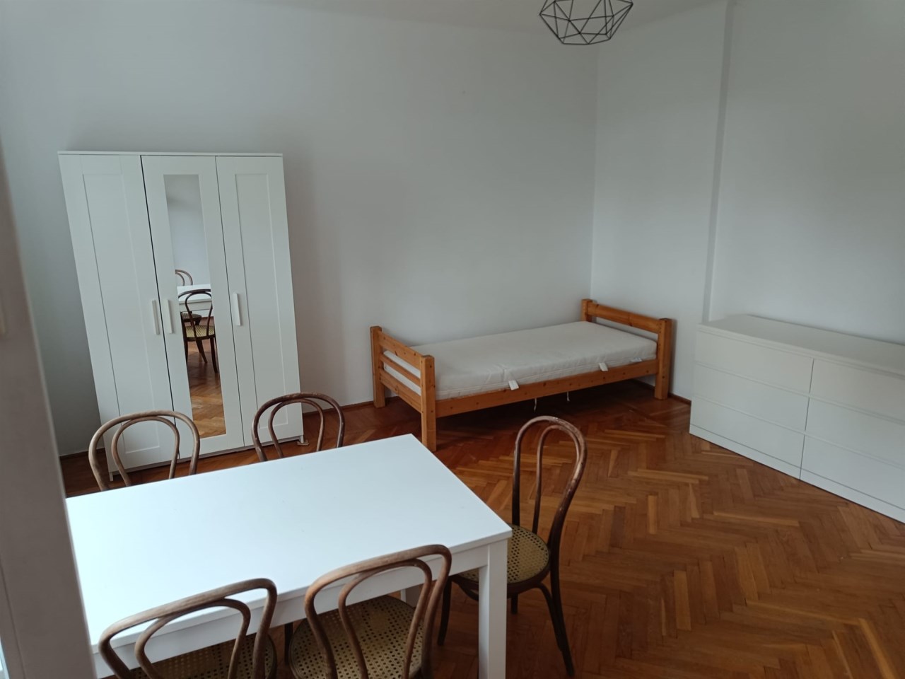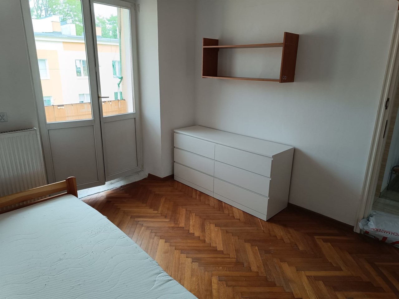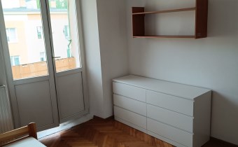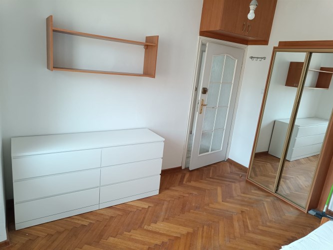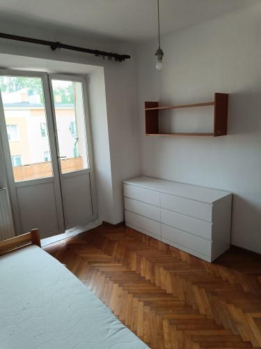 Mieszkanie jest wyposażone w nowe meble. Są tu m.in.  biała szafa z lustrem Brimnes IKEA, duże komody z 6 szufladami MALM i nowe materace.  Przy większym pokoju jest balkon.