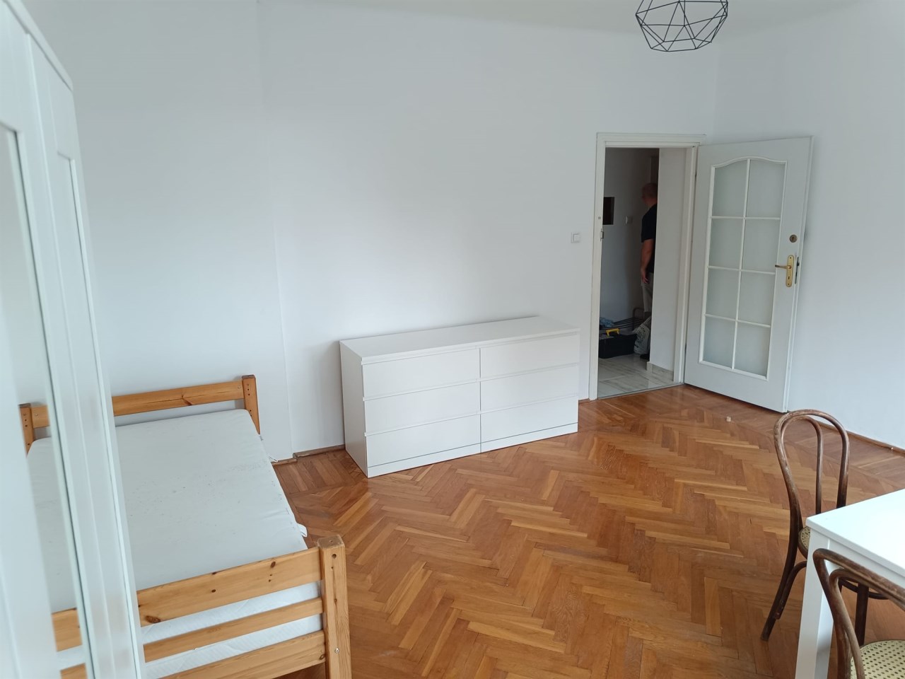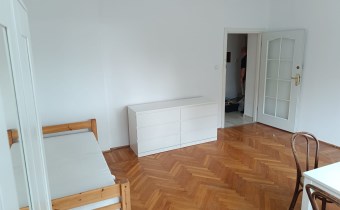 Dwa osobne, bardzo przestronne pokoje z parkietem na podłogach.
