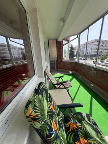*Mieszkanie jest w pełni wyposażone we wszystkie niezbędne sprzęty typu zmywarka, lodówka, pralka, czajnik elektryczny, mikrofala, opiekacz, deska do prasowania, dużo szafek na niezbędne rzeczy, komplet wypoczynkowy.