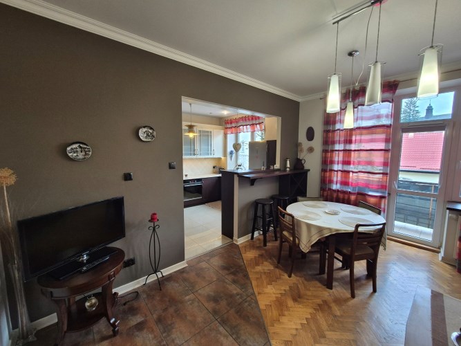 Mieszkanie w stanie idealnym, bardzo klimatyczne i eleganckie , zaaranżowane i wykończone w stylu rustykalnym, oddawane do do wynajmu z pełnym umeblowaniem i wyposażeniem (także pralka, suszarka elektryczna, zmywarka, TV).