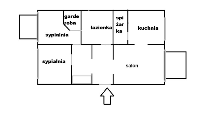 Rozkład: salon otwarty połączony z kuchnią, holl, duża łazienka, 2 sypialnie (w tym sypialnia główna z własną garderobą).