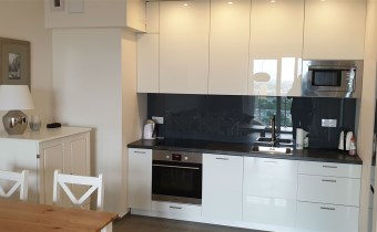 Pełne wykończenie mieszkania w najwyższym standardzie; zabudowa kuchenna (także zmywarka, płyta indukcyjna); w cenie mieszkania jest własne miejsce garażowe w podziemnym parkingu
