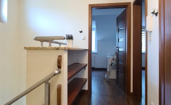 Na I piętrze jest  kuchnia z jadalnią i przestronny pokój dzienny z balkonem oraz łazienka.