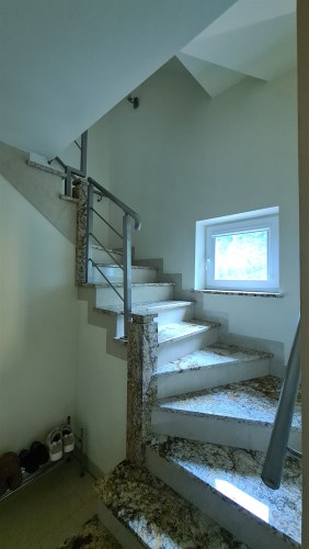 Zacieniony balkon jest też przy północnej sypialni. Schody wykonane są z pięknego kamienia.